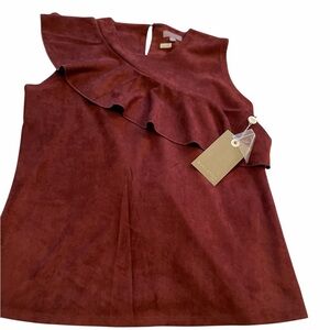 Evolution Rust Color Faux Suede Sleeveless Top/Ruffle-Back Keyhole-Size Medium NWT