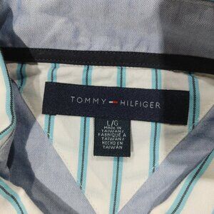 Tommy Hilfiger Men's Casual Button Shirt – Size L – Blue/Black Striped – Excellent Condition