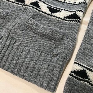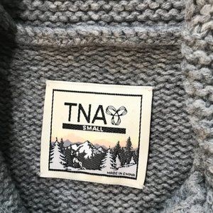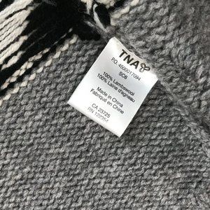 TNA Sea to Sky grey and cream coloured 100% lambswool zip-up sweater. Worn only a few times and in excellent condition with just some minor pilling to the sleeves. Size small.