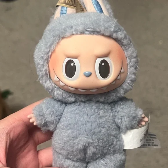 Adorable plush toy in a fluffy blue outfit. Perfect for collectors or as a gift.