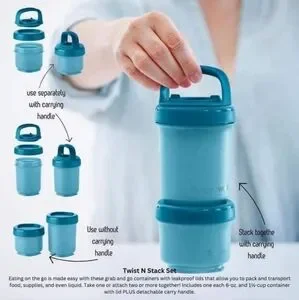 The ππ°π’π¬π π ππ§πππ€, you can take different foods with you while keeping them fresh! They lock together and can even lock with the Stacking Thermal set we had in the past so you can separate hot foods from cold foods.