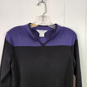 Exclusively Misook Sweater Womens Small Black Purple V-Neck Long Sleeve Knit
