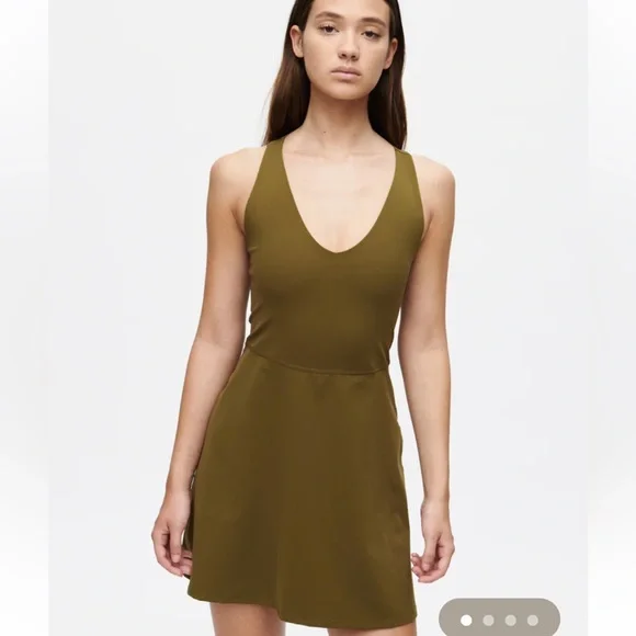 A V-neck dress with a fit-and-flare silhouette and built-in shorts in our compressive SuperForm fabric—a lightweight performance material with a supportive stretch. Worn 3 times, selling as too big for me.