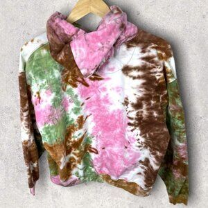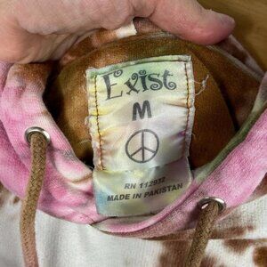 Exist Tie Dye Sweatshirt Hoodie in Women's Size Medium. Drawstring hood. Kangaroo front pocket. 80% cotton and 20% poly. Machine washable. Very good pre-loved condition. No visible flaws.