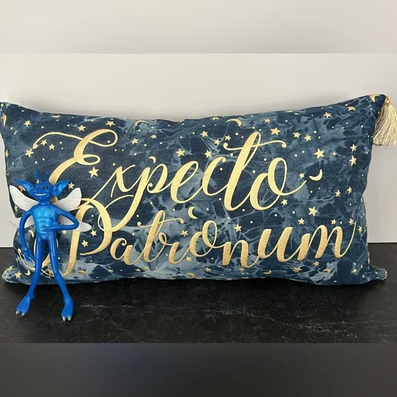 Only used for display- the Cornish pixie is 8 inches tall from the noble collection. Expecto Patronum! is from pottery barn teen . Smoke-free home pillow measures 12“ x 24“ for shipping purposes the pillowcase will be emptied (pillow not included) and you will receive the pillowcase and the Cornish.