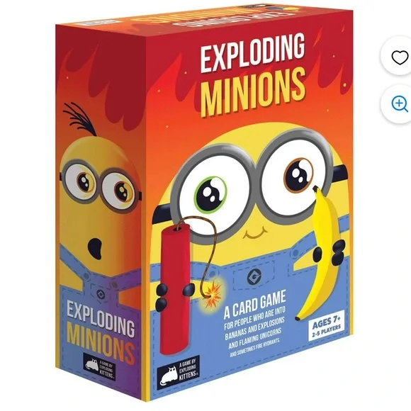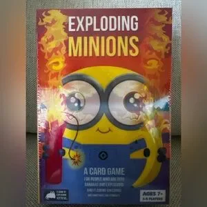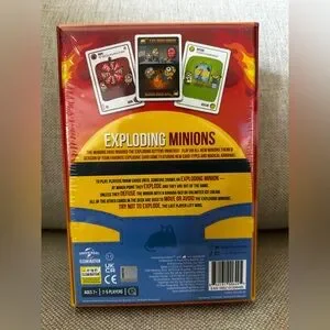 Enjoy endless fun with the Exploding Minions Card Game by Exploding Kittens. Featuring vibrant red and yellow colors, this game is perfect for fans of bananas and explosions. Ideal for ages 7 and up, it supports 2-5 players.