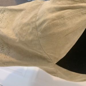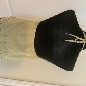 Gorgeous sand coloured tie neck halter top. Features tie neck and laser cut design . Elastic gathering at lower back side zip closure .Nearly pristine condition . No marks stains or holes .