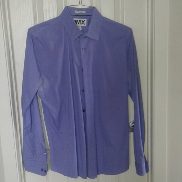 gently used Express 1MX mens shirt. Blue. Extra slim fit. Sized large, fits smaller.