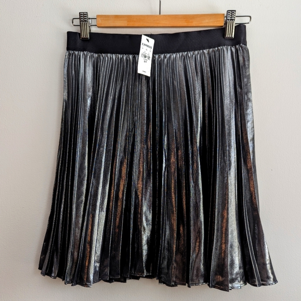 Express skirt Metallic grey, shiny has pleats with elastic waistband. Size s Never worn with tag.