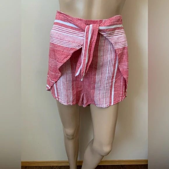 Red and White Extreme High Rise Shorts 55% Linen, 45% Cotton Size Large