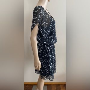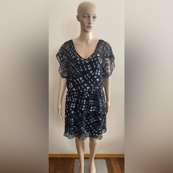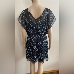 Cute Black Romper Dress with White Pattern. Black Tank Dress underneath. V Front & Back. Elastic Waist.