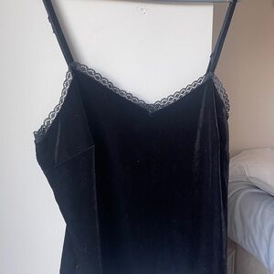 This sleek black camisole from Express features a bustier style with a fitted silhouette and sleeveless design. The top is crafted from a rich black fabric, offering a chic and versatile addition to any wardrobe. Perfect for layering or wearing on its own, this camisole combines comfort with a touch of elegance.