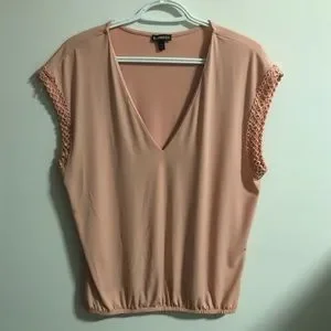 Gently used - great condition! Capped sleeves with sewn-on detail. Elastic hem. 96% Polyester, 4% Spandex.