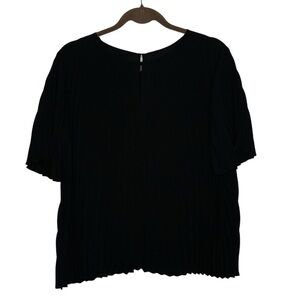 Express Blouse Top Women’s Large Black Accordion Pleat Semi Sheer Office Round Neck Button/Keyhole Back Opening Short Sleeve