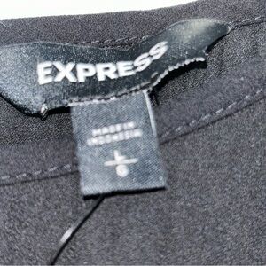 Express Blouse Top Women’s Large Black Accordion Pleat Semi Sheer Office Round