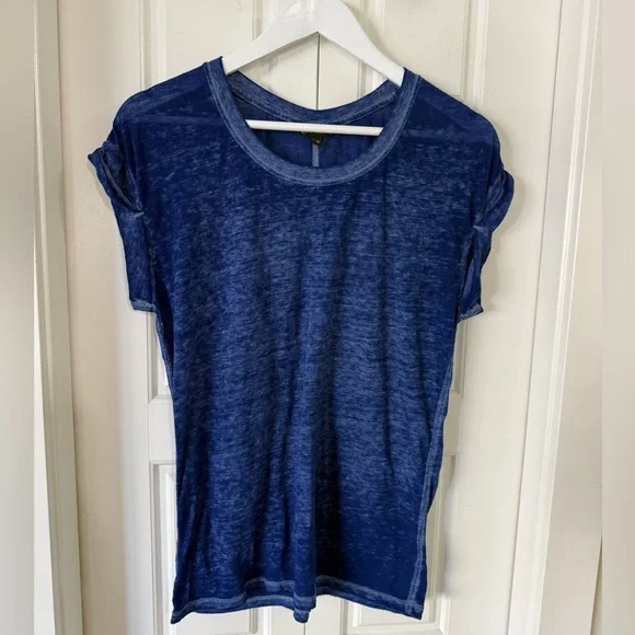 Soft Express burnout-style short sleeve tee in a rich blue colour. Lightweight with a relaxed fit and rolled sleeves. Easy casual piece that feels lived-in and cool.