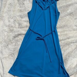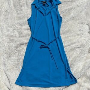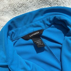 Make a stylish statement with this vibrant blue Express sleeveless dress, size 5/6. Featuring a structured collared neckline, button-front detail, and adjustable tie waist for a flattering silhouette, this piece blends preppy polish with effortless sophistication. The lightweight woven fabric drapes beautifully, making it perfect for everything from workwear styling to brunch-ready edits.