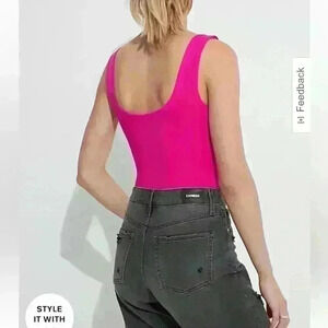 Express Body Contour High Compression Scoop Neck Bodysuit Hot Pink