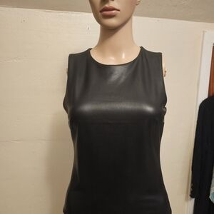 Express Bodycon Faux Leather High Neck Bodysuit Black