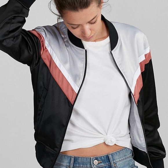 - a pieced chevron design, classic cool details & an easy, silky-smooth fit, this bomber is all about those stylish retro vibes. Wear it as an irresistibly comfy layer over denim or dresses to make your look pop.