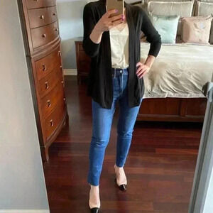 Express Open Front Lightweight Cardigan Black Size Small Clean Open Front Lightweight Cardigan perfect for layering when you need some extra warmth, but don't want something too heavy. 100% Cotton In Excellent Condition Smoke Free/Pet Free Home Fast Same or Next Day Shipping Tags: Draped Cardigan, Long Cardigan