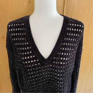 Express • Chenille Chunky Open Knit Vneck Sweater in Black