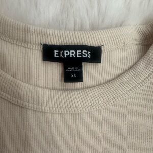 Express Cream Ruffle-Sleeve Ribbed Tank