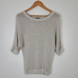 Express Cream Tan & Metallic Dolman Sleeve Knit Semi Sheer Sweater XS