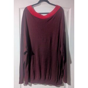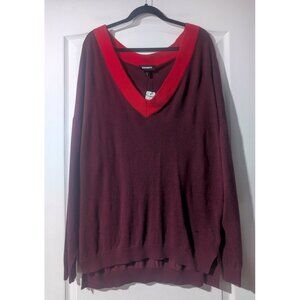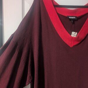 Express | Deep V Contrasting Sweater In Red/Burgundy