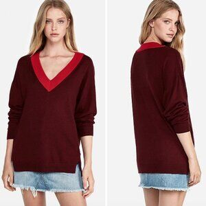 Express | Deep V Contrasting Sweater In Red/Burgundy