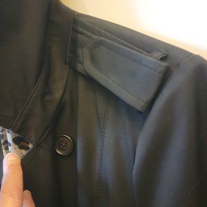 Express, EUC, Size M, black, cotton blend , belted, lined, double breasted trenchcoat with 2 front slip pockets. Belt is removable. No visible marks, stains, tears. 57% cotton, 43% polyester.