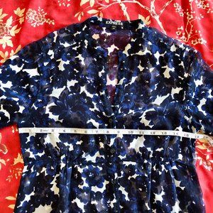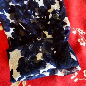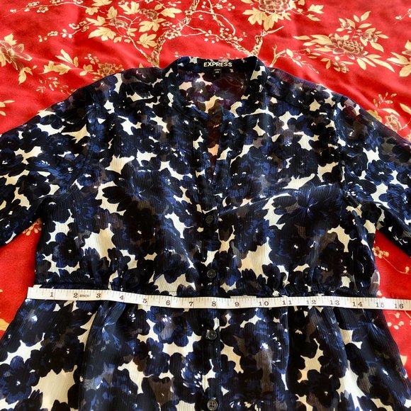 Express Floral-Print Sheer Convertible Sleeve Button-Front Tunic Shirt - XS