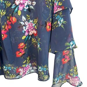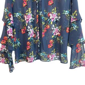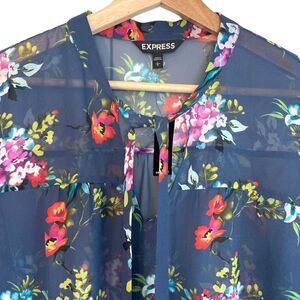 This is a Express Floral Tiered Sleeve Semi Sheer Top