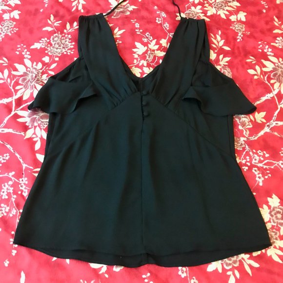Express Flowy Black Ruffled V-Neck & V-Back Sleeveless Blouse - Size XS