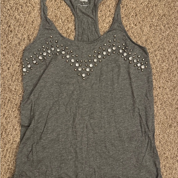 Express Gray Jeweled Racerback Tank