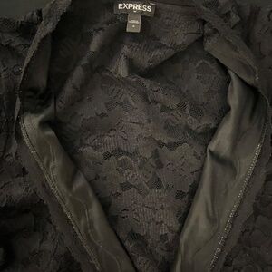Long sleeve lace top coupled with black underlay through the chest. See photo.