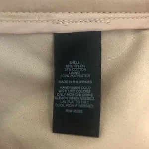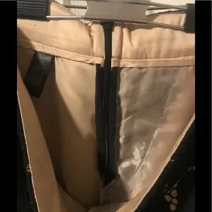 Express shorts with black lace over a beige silk-like polyester lining. Can easily be dressed up for a more fancy look.