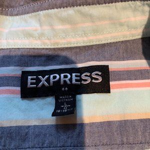 Express Men's Colourful Striped Short Sleeve Collared Shirt Large