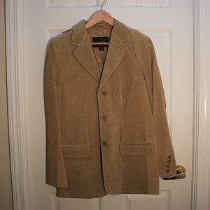 Express Men's Three Button Single Breasted Leather Blazer Jacket Brown Small