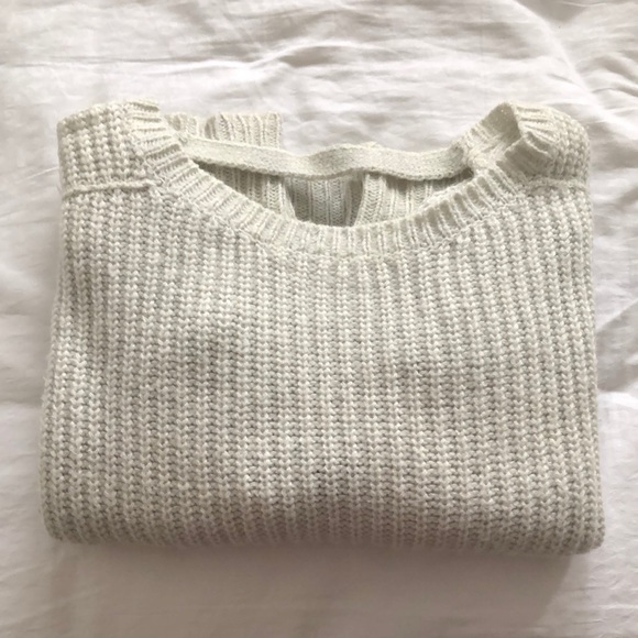 Cozy and comfy open-back sweater from Express! Beautiful light grey/pale blue colour. Size M but very roomy and could easily fit a large.