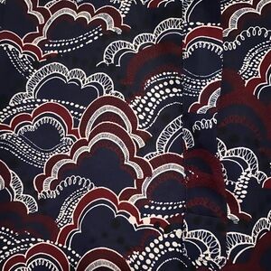 Stylish blue and red patterned design. Features intricate white detailing. Made by Express. Pit to pit is 21 inches