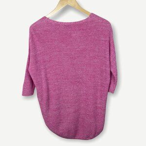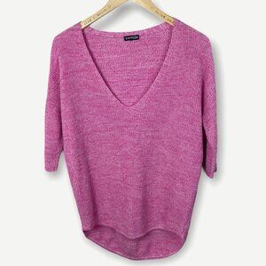 Express Pink V-Neck Knit Sweater 3/4 Sleeves Size Medium Top Short Sleeve Boho