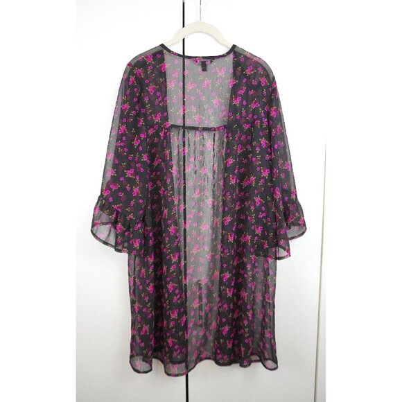 Express semi-sheer floral kimono robe. In excellent condition; just note that the laundry tag has been removed (probably because it was itchy!).