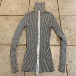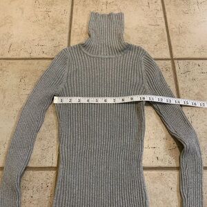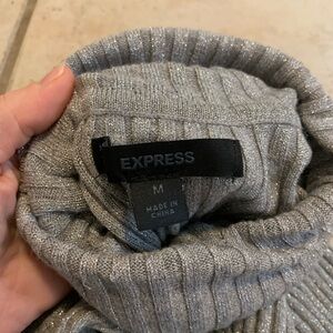 Express Silver Metallic Ribbed Turtleneck Sweater M Sparkle Holiday Knit