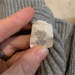 Express, Metallic, Sparkle, Shimmer, Silver, Gray, Ribbed Knit, Turtleneck, Cowl Neck, Fitted, Holiday, Party, Winter, Cozy, Classic, Y2K