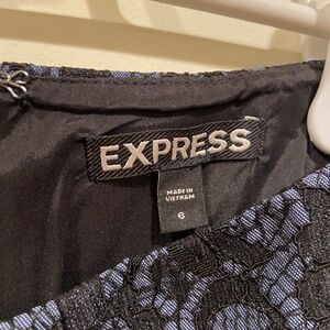 Express Midi Pencil Skirt Blue Black Lace Overlay Back Vent Lined in Size 6