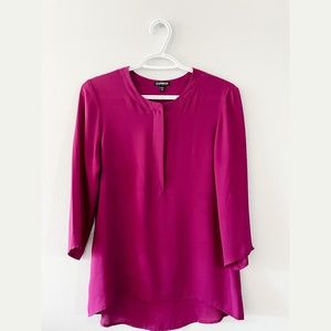 Express Solid Dark Pink Shirt with Front Zipper