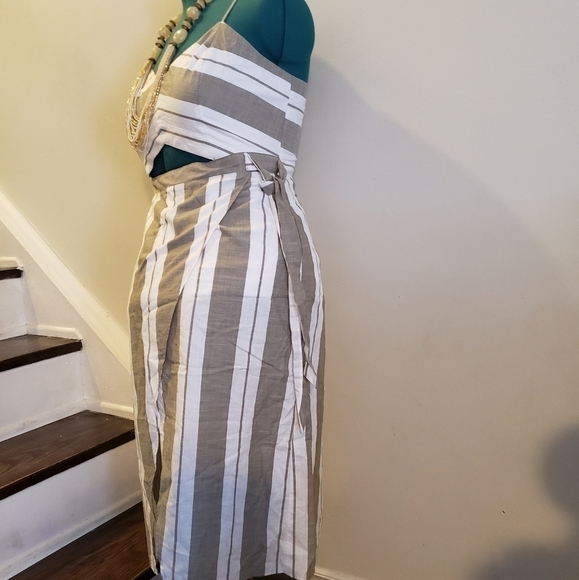 A wrap midi dress with a cut-out in the front and a soft cotton blend to keep you cool and comfortable. Finished with adjustable straps and an exposed back zipper.