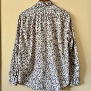 Discover the perfect blend of style and comfort with this Express casual button-down shirt. Featuring a sophisticated floral pattern on a lightweight fabric, it's ideal for the office. Size large. In good pre-owned condition, laundered and ready to wear.