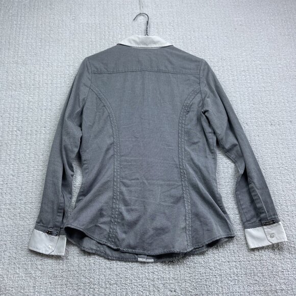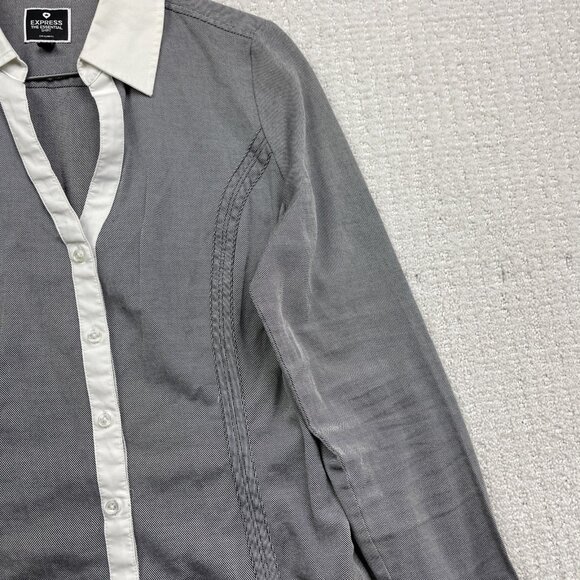 Express The Essential Womens M Long Sleeve Button Up Shirt Grey Blouse Top